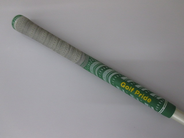 | レンチは付属しません。 グリップはゴルフプライドのニューディケードマルチコンパウンドが装着されています。 簡易ハカリの計測では重量約307グラム、バランス約D3です。 |